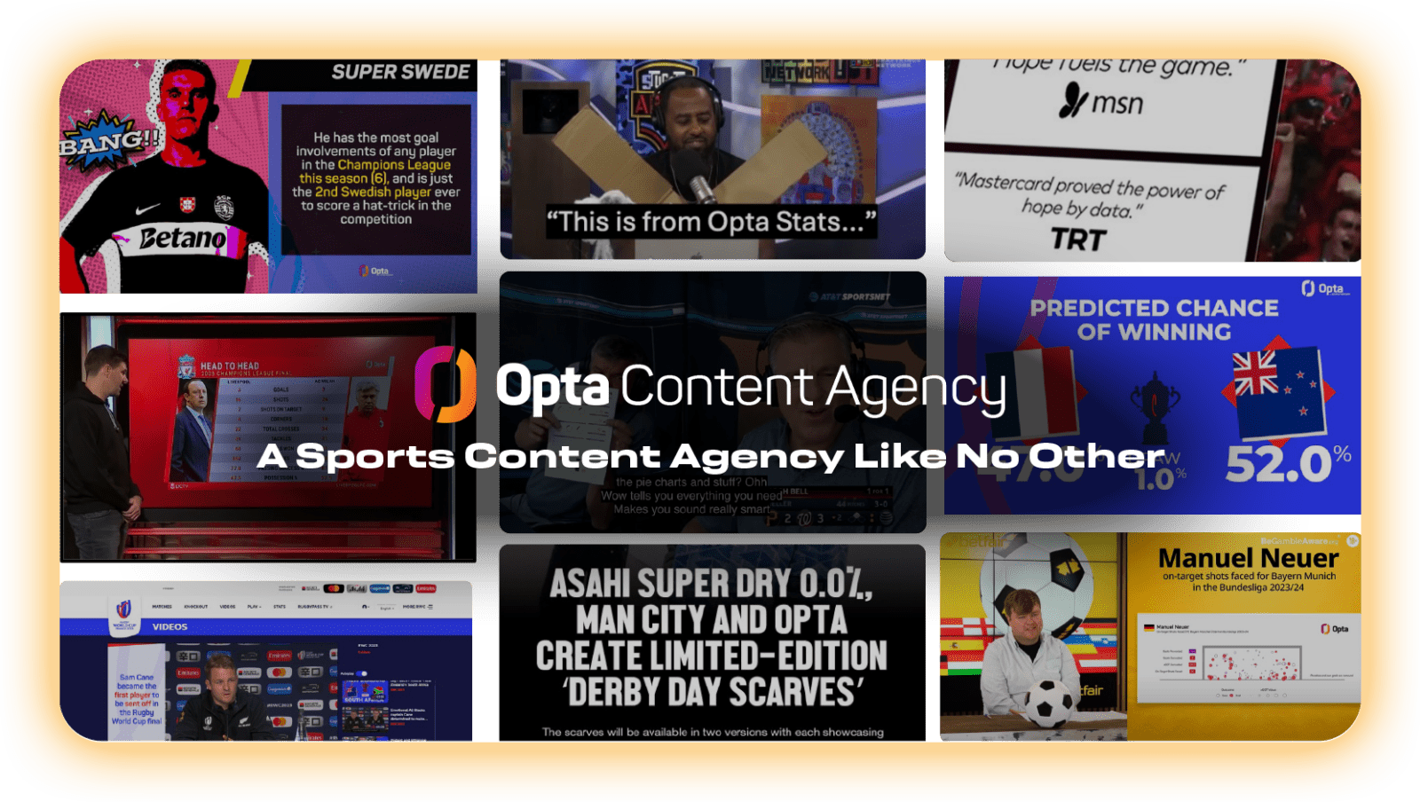 For decades, our expert sports journalists, creators, and statisticians have helped the biggest names in sport engage and grow their audiences with data-driven insights, compelling storytelling, and cutting-edge content. Now, the Opta Content Agency brings this expertise together in one powerful service.