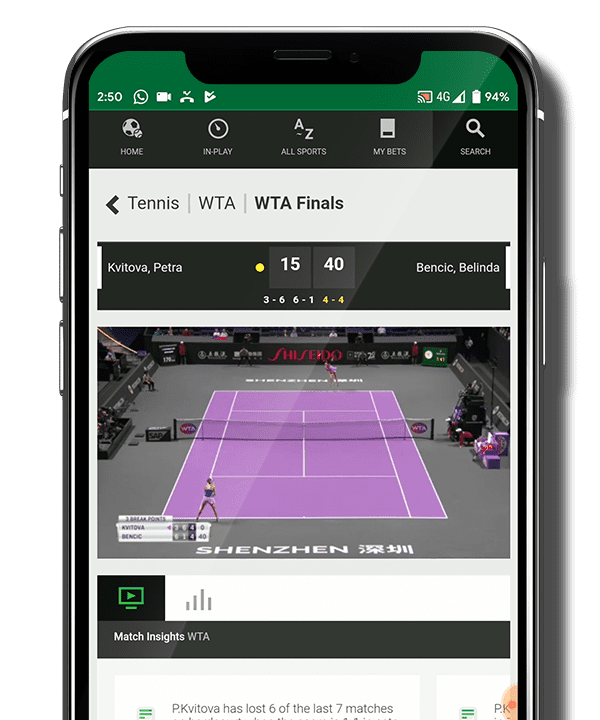 Intuitive in-play match animation and live player statistics to inform bettors and help them make betting decisions.