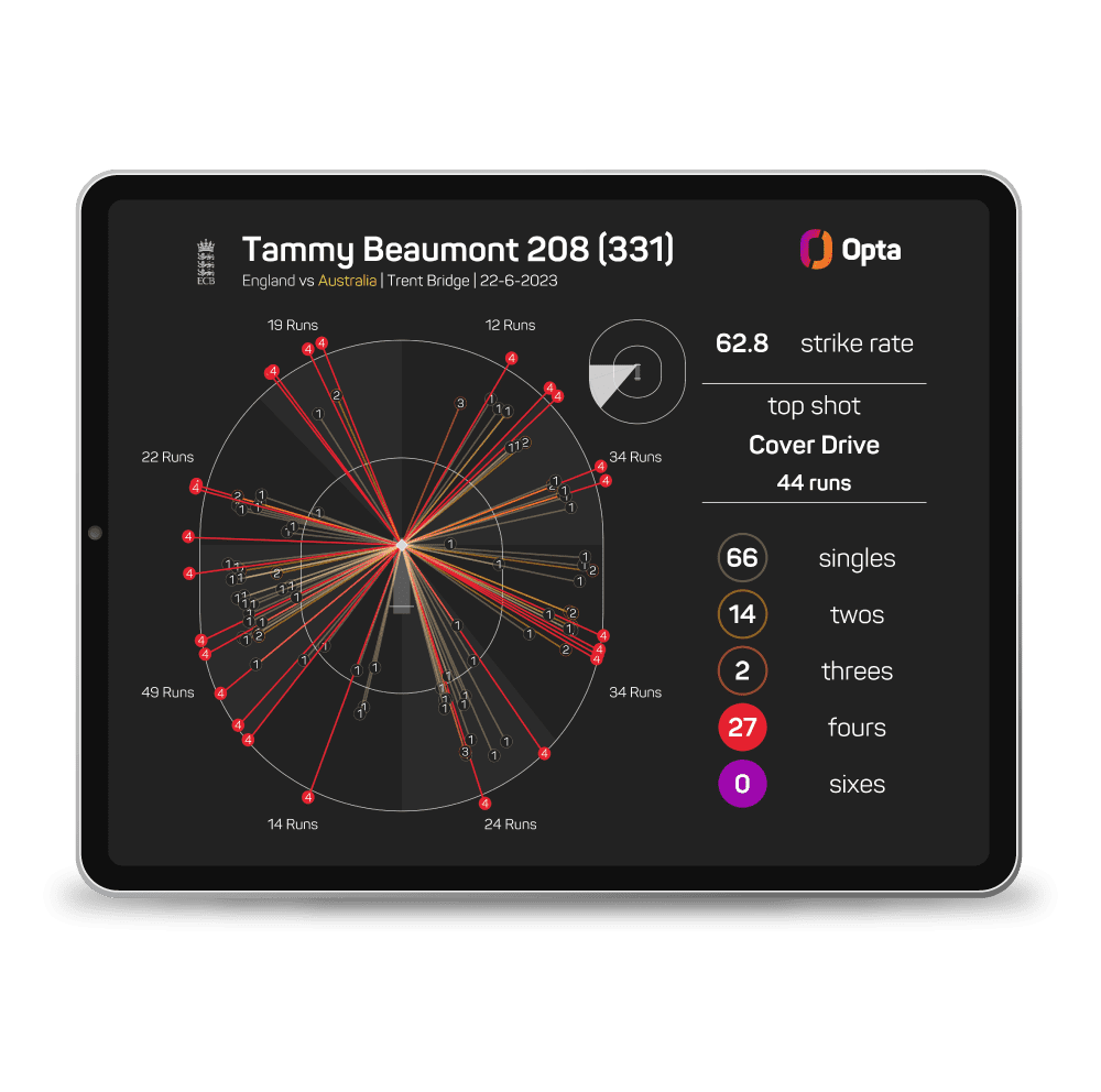 Highly detailed ball-by-ball Opta data is powering a wide range of new performance metrics, which provide you with greater context around batting, bowling and fielding performance across elite men’s and women’s cricket.